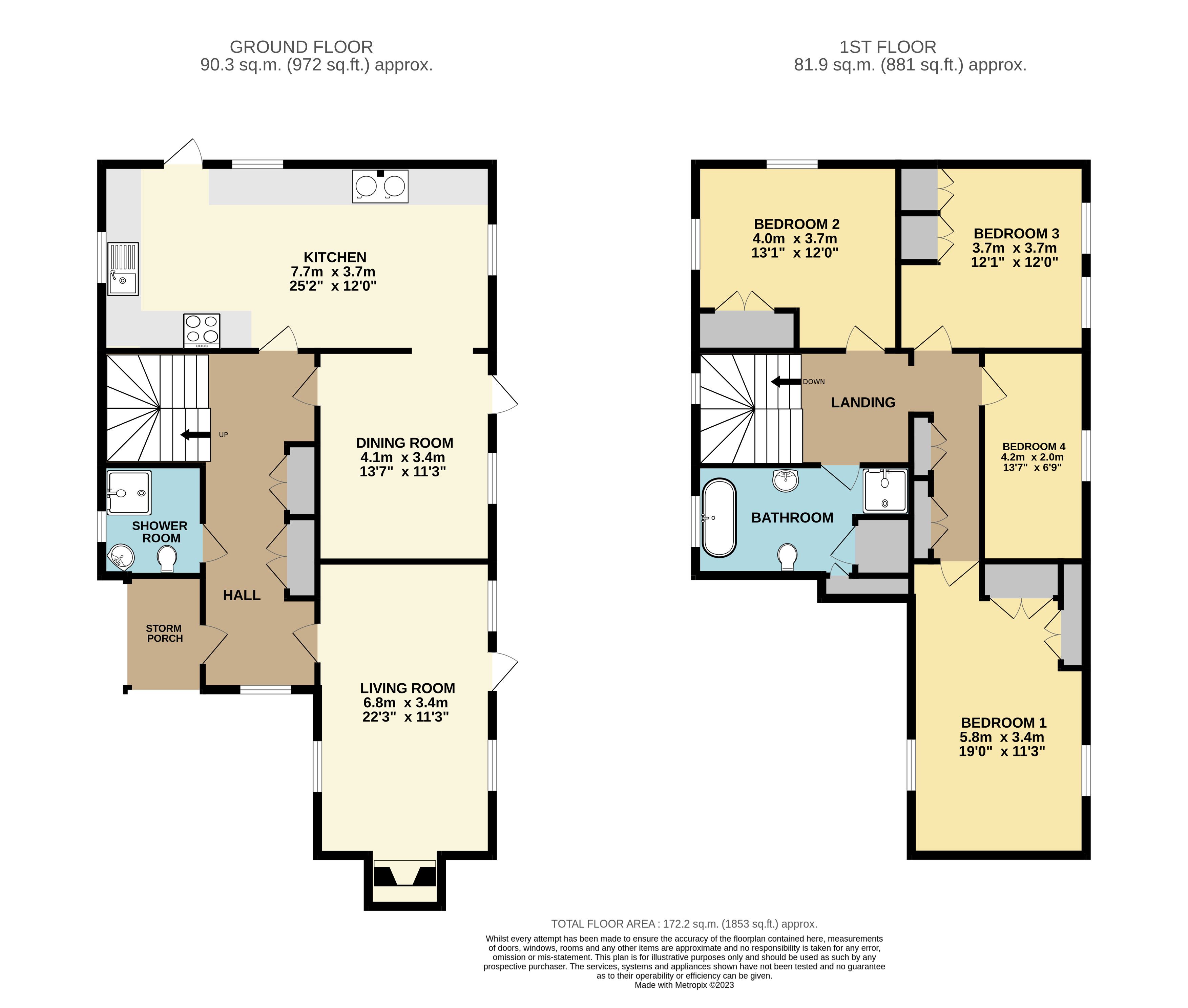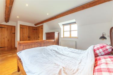 Upstairs, the property features four bedrooms, all with countryside views. Three are spacious doubles with built-in storage, while the fourth could serve as a single bedroom or office. The family bathroom includes a bath, separate shower, WC, and basin.