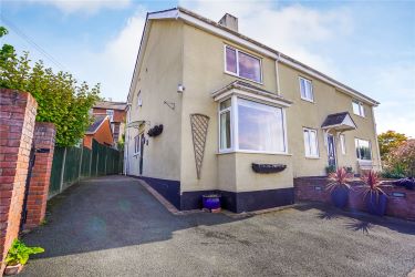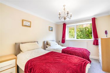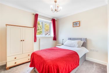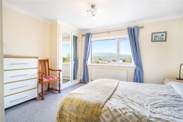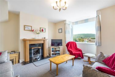 The sitting room is a welcoming space, with a large bay window that frames the wonderful views over the town and countryside. A gas fire, with an attractive wooden surround and slate hearth, adds to the cozy atmosphere.