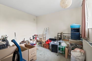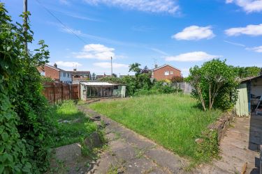 The rear garden occupies a corner plot and has a lean-to shed adjacent to the detached concrete garage. There is a dropped curb to the side, so there would be the ability to have off-street parking either to the side of the shed, or where the current garage is located.